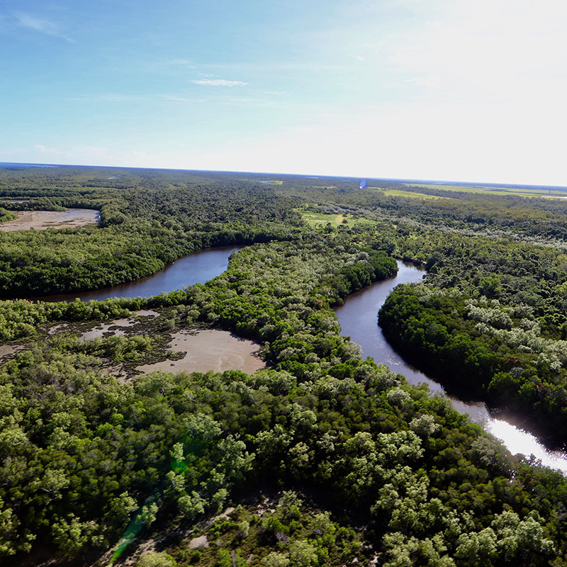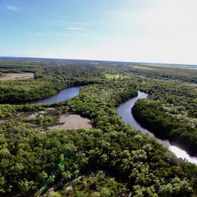 Waldrum Wetlands 20 mins | Our helicopter tracks south, flying over Wallaby Island which sits in the channel mouth of the Mission River, and out over the West Coast. We fly over the coastline taking in Waldrum Creek before heading back to Weipa. | $310pp | ||